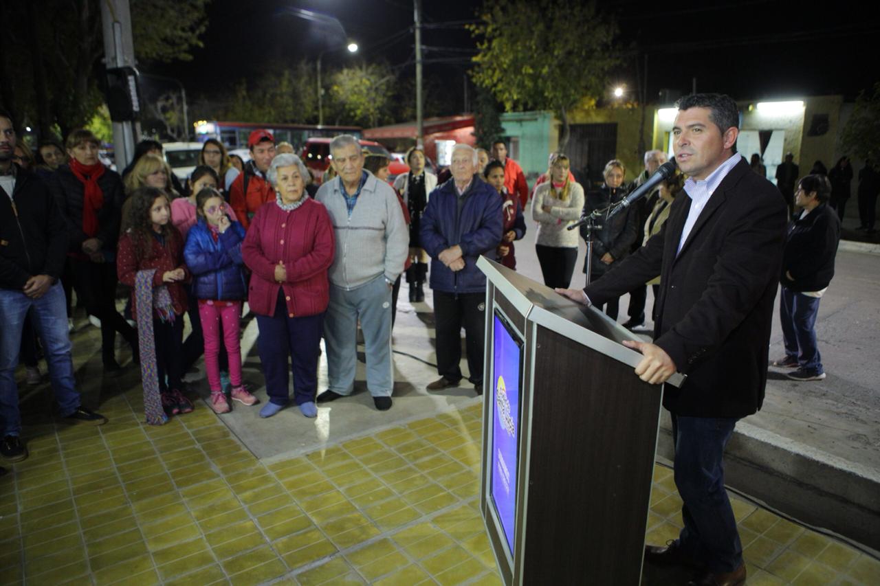 Acompañado por el intendente recientemente electo Juan José Orrego, el Diputado Carlos Platero, vecinos y funcionarios, el jefe comunal dejó habilitada esta moderna iluminación.