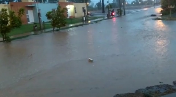 #lluviaEl agua corre como un río por las calles del barrio Valle Grande, en Rawson, luego de la tormenta de esta mañana.