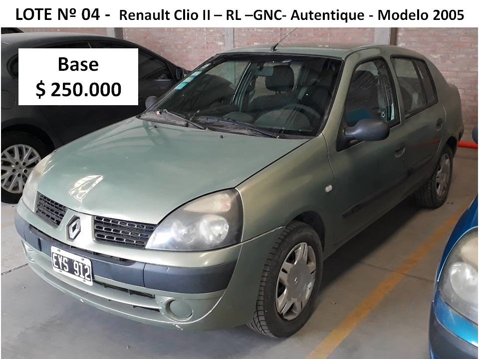 Lote 04: Un Renault Clio 2, RL, Modelo 2005, con GNC, Dominio EYS 912, con una base de remate de $ 250.000.