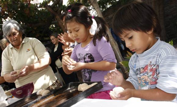Meter las manos en la masa fue el primer impulso de los niños que pasaron a la Huerta de Doña Paula. El amasijo, hecho con harina integral realizada en los históricos molinos jachalleros, había estado tanto tiempo en reposo que se salía del bol. Los chicos, después de lavarse las manos y desinfectarlas con alcohol en gel, fueron los encargados de armar los bollitos. Las mujeres del INTA Sarmiento dieron las indicaciones y controlaron los pancitos que ya estaban en el horno, ubicado al costado de la huerta repleta de aromáticas y pimientos a medio crecer.