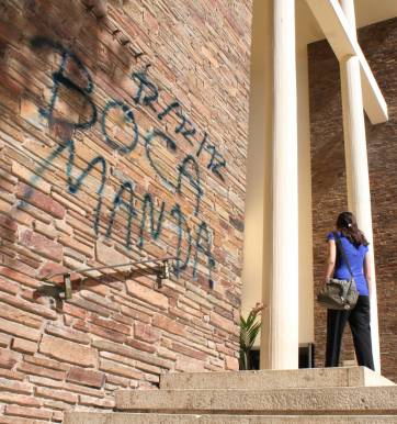 No es la primera vez que la Iglesia Catedral sufre un ataque vandálico en su edificio. Pero esta vez el daño será difícil de reparar. Es que ayer, el muro principal del templo apareció cubierto con una leyenda que hace referencia al equipo de fútbol Boca Juniors. Los grafitis están sobre la pared de piedra incrustada, un material que es difícil de limpiar, según dijo el padre Rómulo Cámpora. A la Catedral le habían puesto custodia policial en junio del año pasado porque en varias oportunidades hicieron destrozos adentro y afuera del templo. Y nunca localizaron a los responsables. Las pintadas aparecieron luego del festejo de los hinchas de Boca, que realizaron el miércoles por la tarde en el microcentro sanjuanino para festejar su día. Por esta celebración, también hubo incidentes en Buenos Aires.
