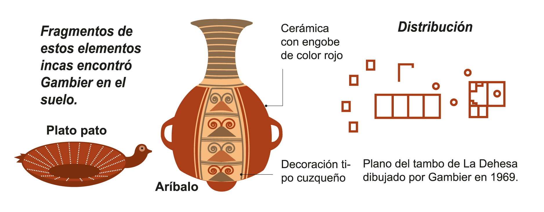 Ni Beorchia ni Giordano (quienes gozan de buena salud) recuerdan muchos más detalles de esta aventura. Llegaron rebotando contra las piedras hasta el lugar. Hubo un asado y el susurro en voz baja de una damajuana enfriándose en el riachuelo. Gambier tardó sólo unos minutos en reconocer que las ruinas eran incas, que aquello era un tambo. Mientras el fuego era encendido, su fuerte sospecha se confirmó. Durante su búsqueda superficial encontró cerámica con engobe de color rojo, “platos patos” y algunos fragmentos decorados de tipo cuzqueño.