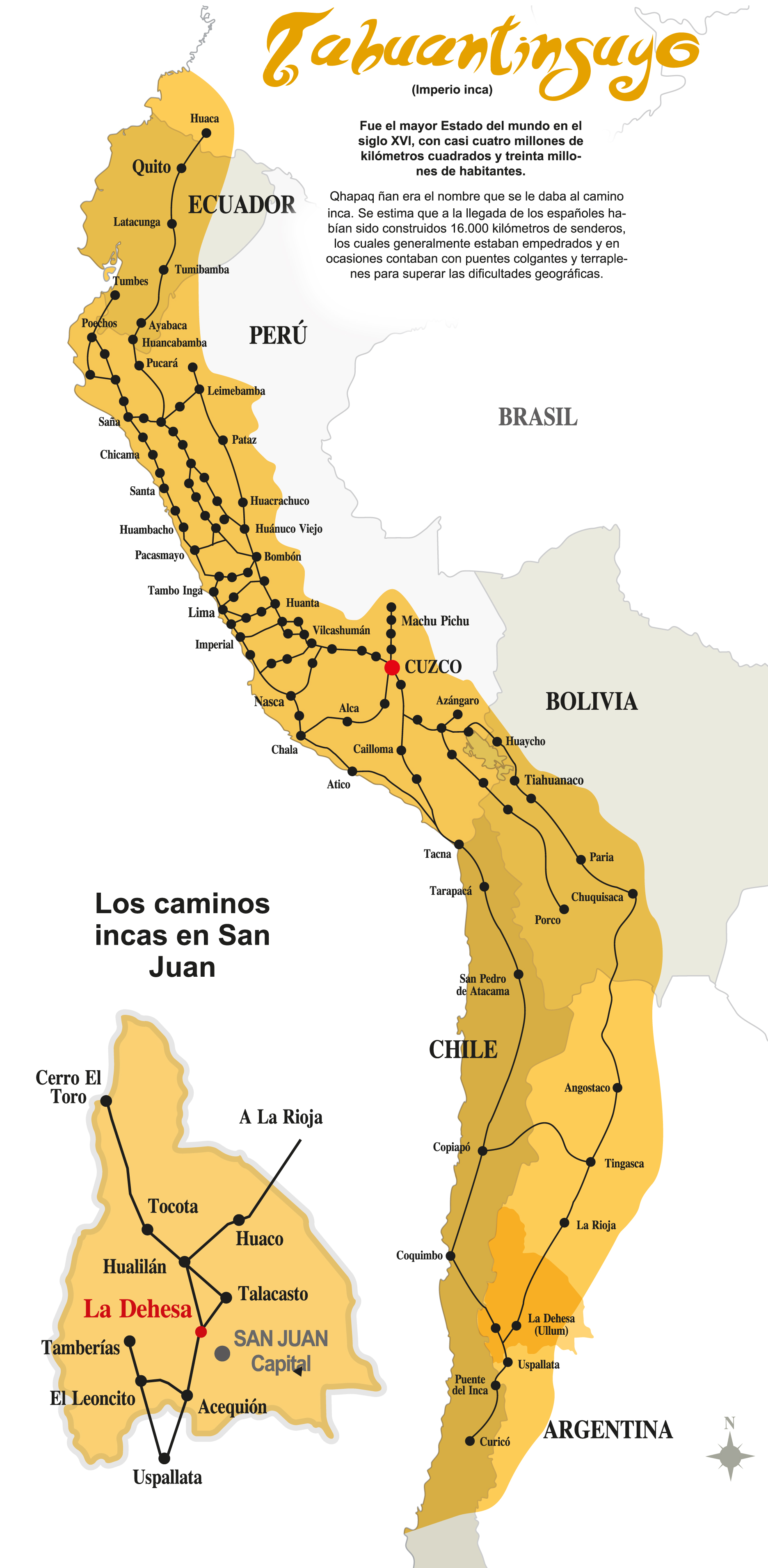 En 1969, todavía no había sido probada del todo la influencia del imperio incaico en San Juan. Los caminos incas apenas se estaban descubriendo. Los exploradores tenían la sospecha de que la alfarería del huarpe y su cultura se encontraban relacionadas directamente con el Perú. Pero todo esto estaba todavía por ser demostrado. El rompecabezas científico comenzaba con el Qhapaq Ñan (caminos incas) y terminaba por los tambos, una especie de fortaleza, taberna y/o postas para correos incas.