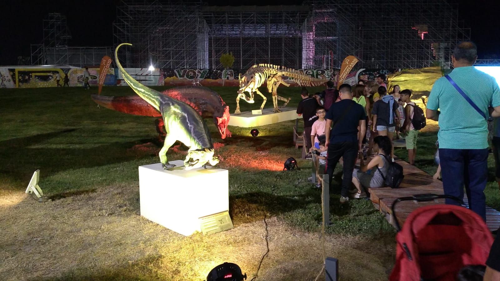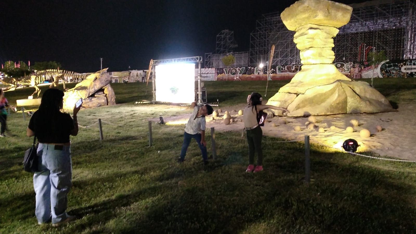 La muestra es una de las sensaciones del predio, ya que están representadas las geoformas del Hongo y la Cancha de Bochas, y hay distintos dinosaurios que fueron parte hace millones de años de la vida del Valle de la Luna.