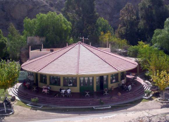 La construcción circular que hoy está cubierta con maderas y vacía prometía ser un gran emprendimiento turístico cuando nació allá por la década de 1930, según cuentan los que conocen su historia. Sin embargo, con el paso de diversos gobiernos y concesionarios, el restaurante y la pileta tuvieron una historia de altibajos que nunca les permitieron tener periodos largos de éxito. Se trata de la Hostería Domingo Faustino Sarmiento, más conocida como Hostería de Zonda por estar justo en medio de la Quebrada de Zonda, que planean volver a concesionar con la intención de que por fin sea un imán para el turismo en Rivadavia.