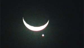 San juan, 8 de septiembre.- El fenómeno que estaba anunciado para hoy se pudo ver a simple vista en nuestra provincia. La Luna se interpuso entre la Tierra y Venus creando una imagen pocas veces vista en nuestro hemisferio.