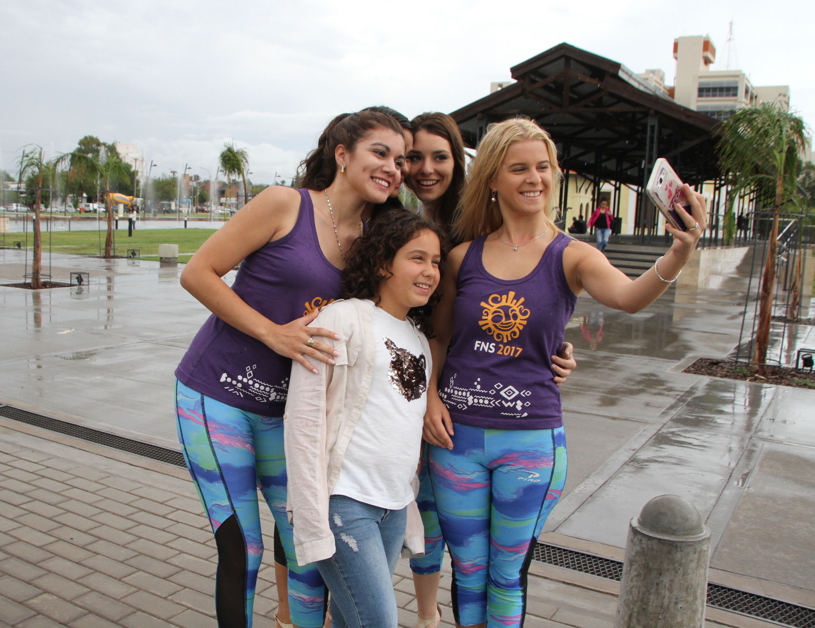 Ensayo sin parar. Todos los días las candidatas ensayan en la zona de la Plaza del Bicentenario. El viernes lo hicieron hasta bajo la lluvia y se sacaron fotos con la gente que las saludó.