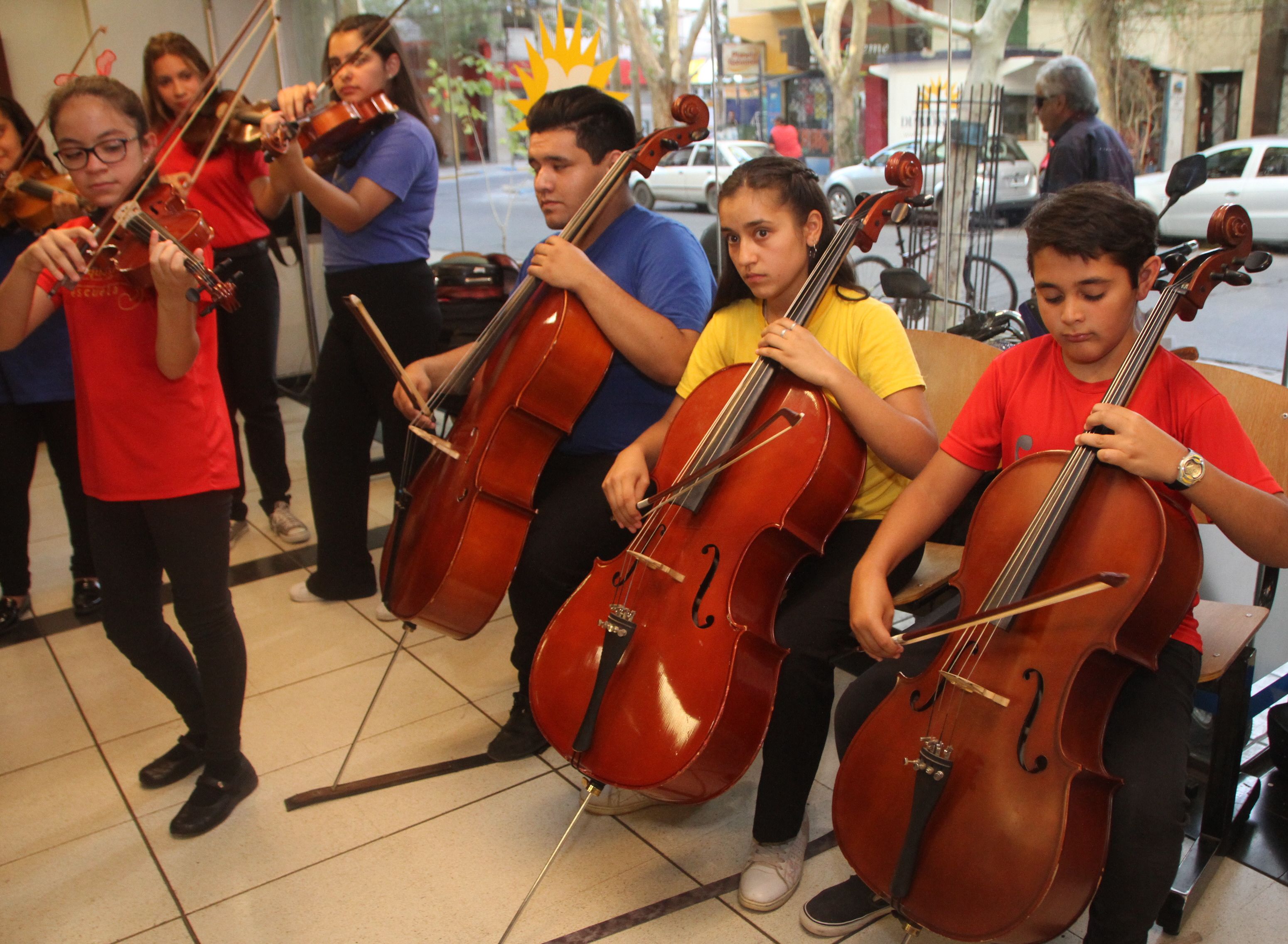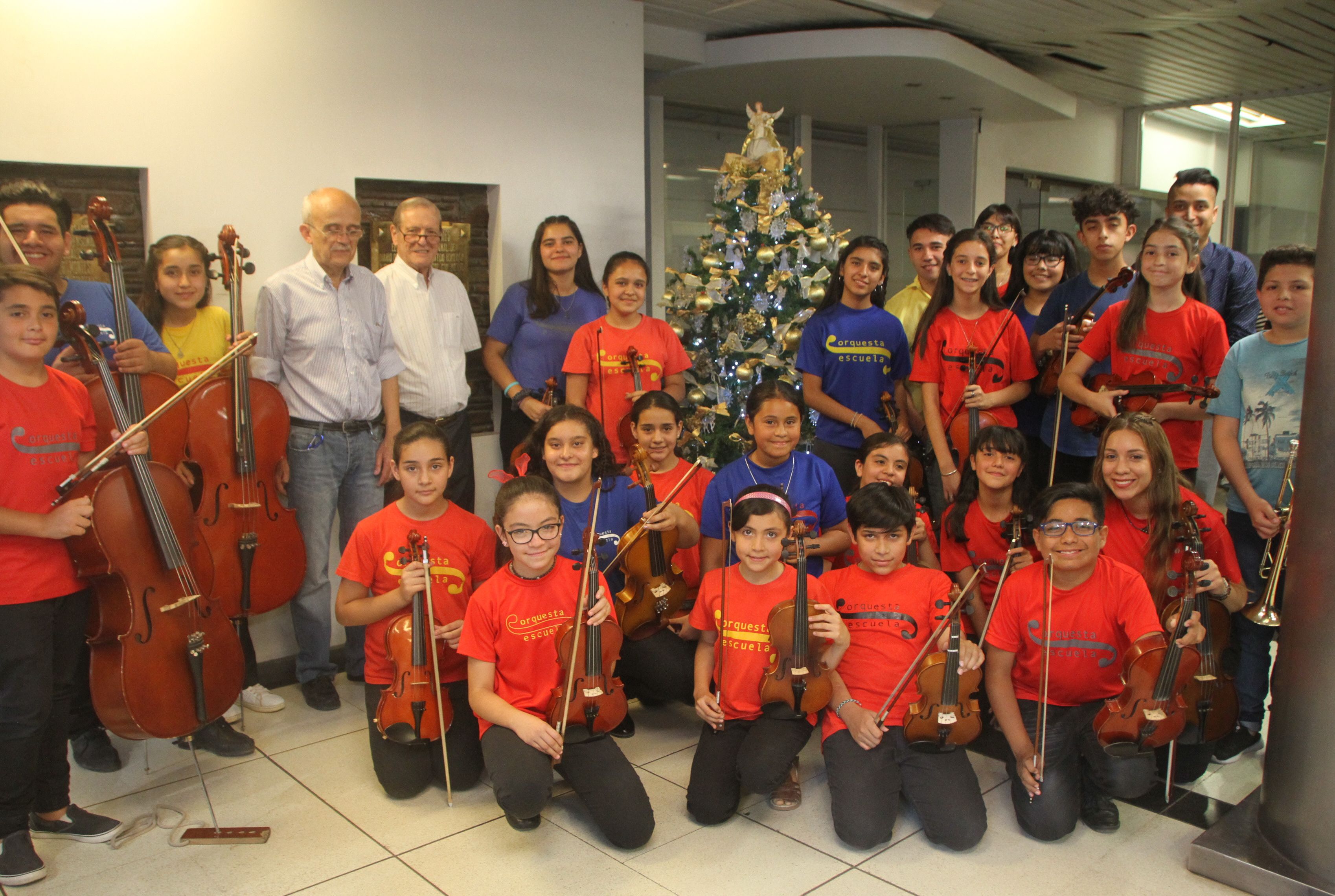 En lo que ya se está convirtiendo en una saludable costumbre, por cuarto año consecutivo integrantes de la Orquesta Escuela ofrecieron un repertorio de clásicos musicales de diferentes géneros en la sala de recepción de DIARIO DE CUYO, captando no sólo la atención de directivos y personal de la empresa periodística, sino también de los transeúntes que detenían su marcha e ingresaban tímidamente para disfrutar del espectáculo.