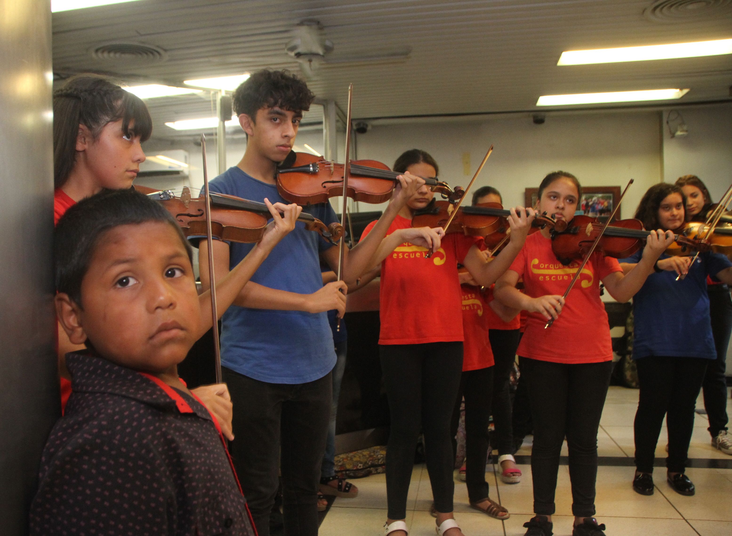 Con cuerdas y vientos, los chicos de 9 a 15 años visitaron DIARIO DE CUYO e interpretaron varias canciones de su variado repertorio, que va de tangos a ritmos latinos y también hits de la música clásica, de la mano de su director, el venezolano Hildemaro Villarreal.