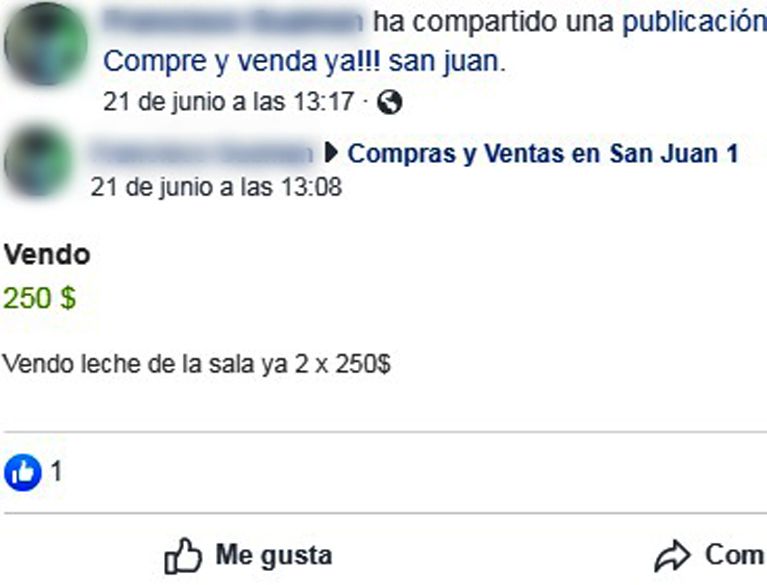 La compraventa ilegal de la leche que es entregada gratuitamente en los centros de Salud Pública sumó ayer un nuevo capítulo. Después de que una investigación periodística de DIARIO DE CUYO sacara a la luz el mercadeo que hay con este alimento en las redes sociales, el Ministerio de Salud hizo una denuncia policial, para que la Fuerza investigue a fondo quiénes son las personas que realizan esa práctica prohibida. Además de la denuncia, la cartera abrió otros dos frentes de investigación, pues agentes sanitarios y otros referentes de los centros de Salud tratarán de recopilar información, por un lado dentro de las salitas y por otro, en algunos barrios. "En teoría no sabemos si -los vendedores- son de Salud Pública o es gente que pide en las salitas, como dicen las publicaciones. Es por esto que también vamos a evidenciar un mayor control en la entrega de la leche. Hay gente que no tiene Facebook fidedigno, pero con las capturas de las publicaciones que hizo DIARIO DE CUYO vamos a tratar de evidenciar este problema", dijo la ministra de Salud, Alejandra Venerando.