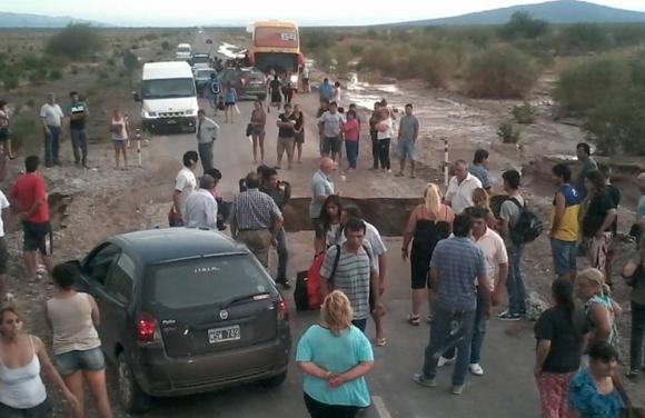 �Tras varias horas, Vialidad Nacional restableció ayer el tránsito en la Ruta 40 luego de que una creciente provocó un socavón entre Talacasto y Matías Sánchez. Realizaron un desvío provisorio, hasta que reparen la ruta.