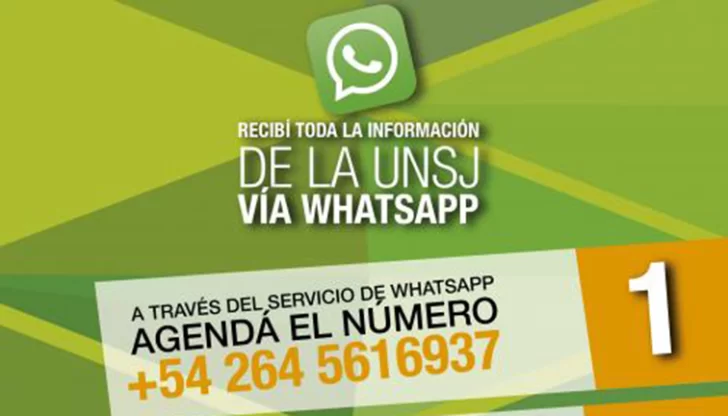 San Juan, 28 de julio.- La Universidad Nacional de San Juan implementa un nuevo modo para enviar información sobre sus actividades y producciones a través de WhatsApp. La idea es comunicar datos importantes a docentes, alumnos y la comunidad en general.