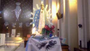 San Juan, 20 de agosto.- La réplica de la Virgen de Luján que se encuentra ubicada en las Islas Malvinas, ya es encuentra en la provincia. Esta mañana fue colocada en la Catedral, en un emotivo acto en el que estuvieron presentes excombatientes.