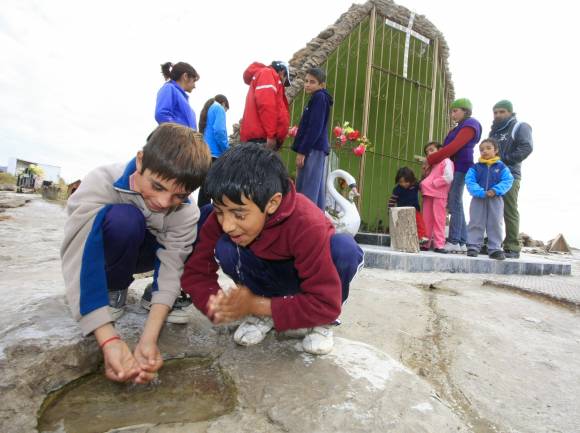 El hombre luego buscó el lugar durante varios meses hasta que dio con las vertientes en La Laja en las que crecen chilcas dulces. Con el tiempo, armó una comisión y consiguió que le cedieran un terreno para el santuario. Allí se instaló una gruta con una imagen, que fue reemplazada luego por una más grande que llegó gracias a una donación desde Buenos Aires.