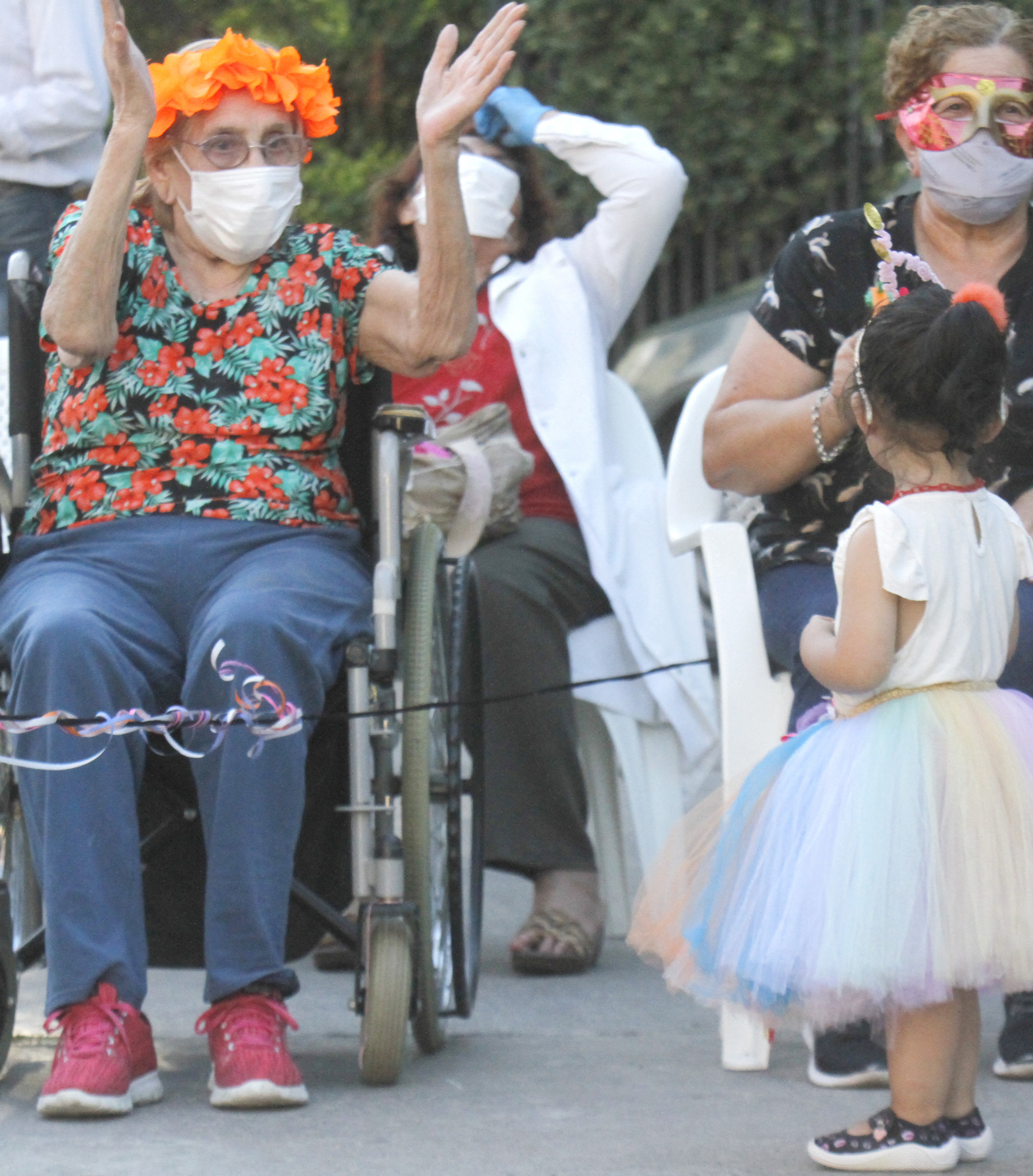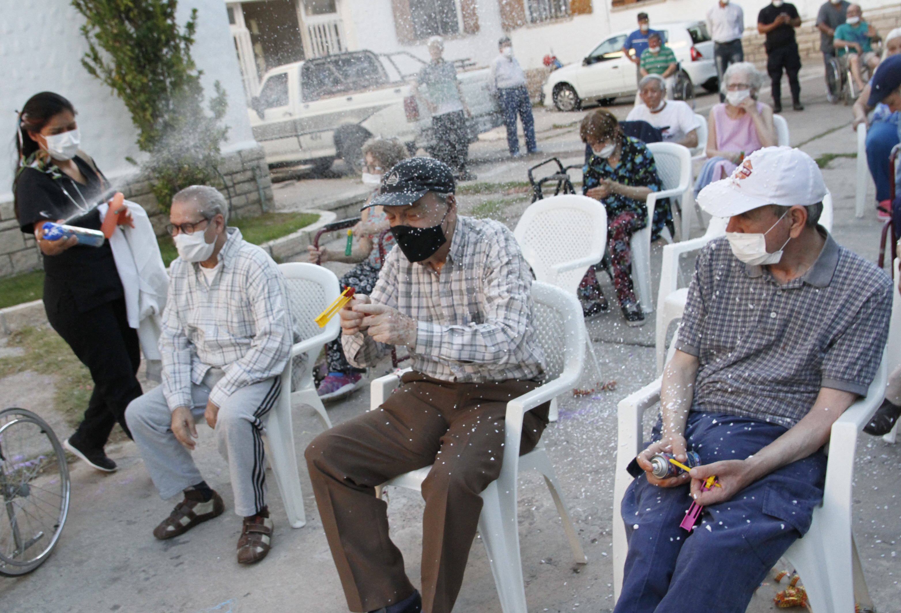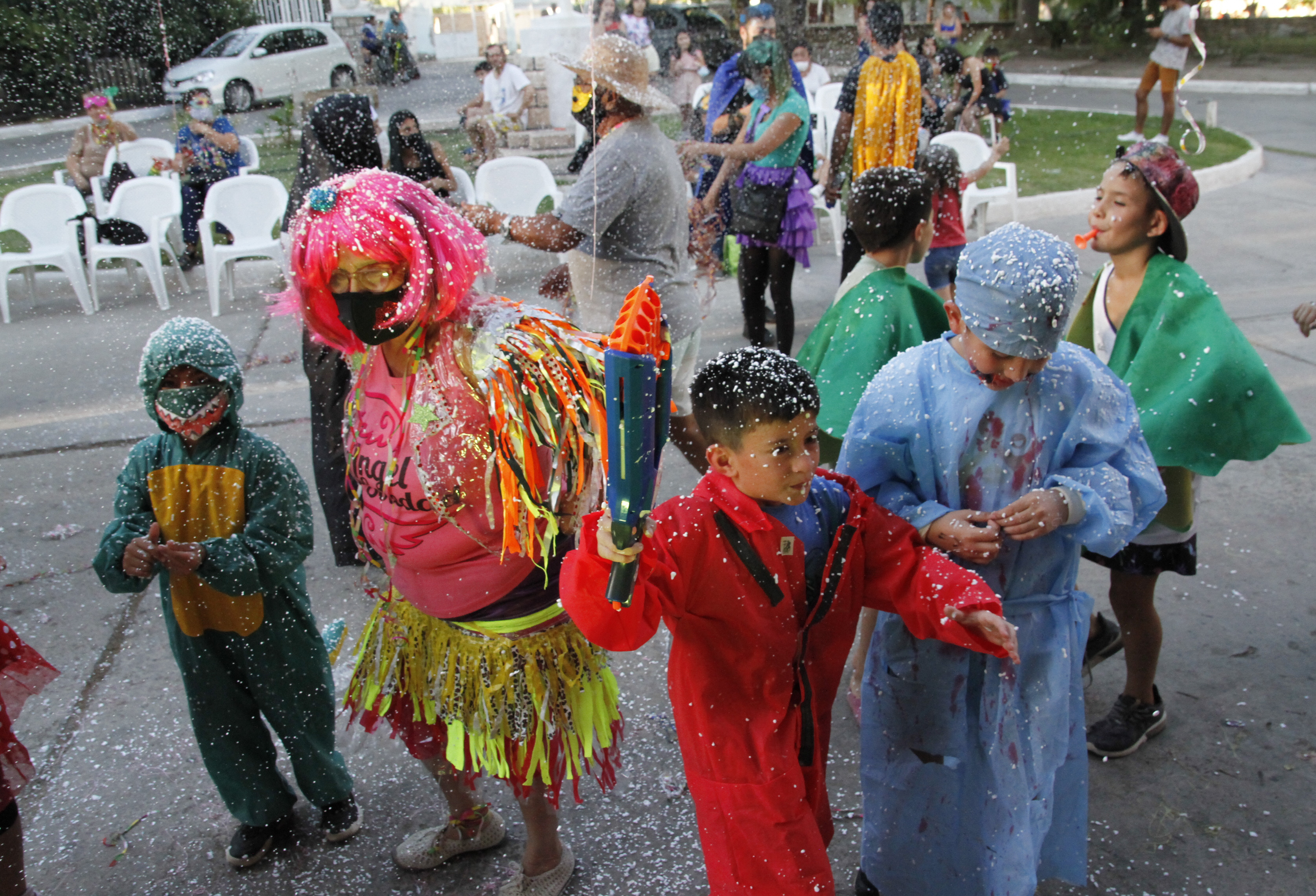Los abuelos comenzaron a palpitar la fiesta ni bien ocuparon las sillas que instalaron en el patio delantero de la Residencia. Es que en ese preciso momento comenzaron a recibir el cotillón para divertirse. Algunos llegaron al lugar ya con pelucas y antifaces, pero a eso le sumaron las cintas de colores que les entregaron los chicos del Centro Cultural de la Residencia. Ellos fueron quienes organizaron la vuelta del Carnaval de Eva, nombre que recibe este evento y que se realizó por última vez en el 2019 por la pandemia, y cuyo objetivos principal es integrar a los residentes con los miembros de la comunidad cercana para un encuentro intergeneracional. Por esta razón, los principales invitados para este evento fueron los niños, especialistas en contagiar alegría. Y cumplieron fielmente con su misión.