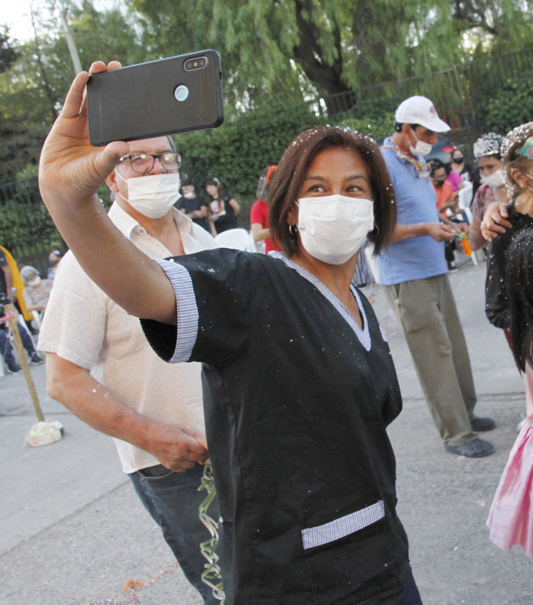 Algunos les echaron espuma, mientras que otros les ayudaron a hacer sonar las matracas y hasta aprovecharon el momento para hacerse selfies con ellos y la fiesta de fondo.