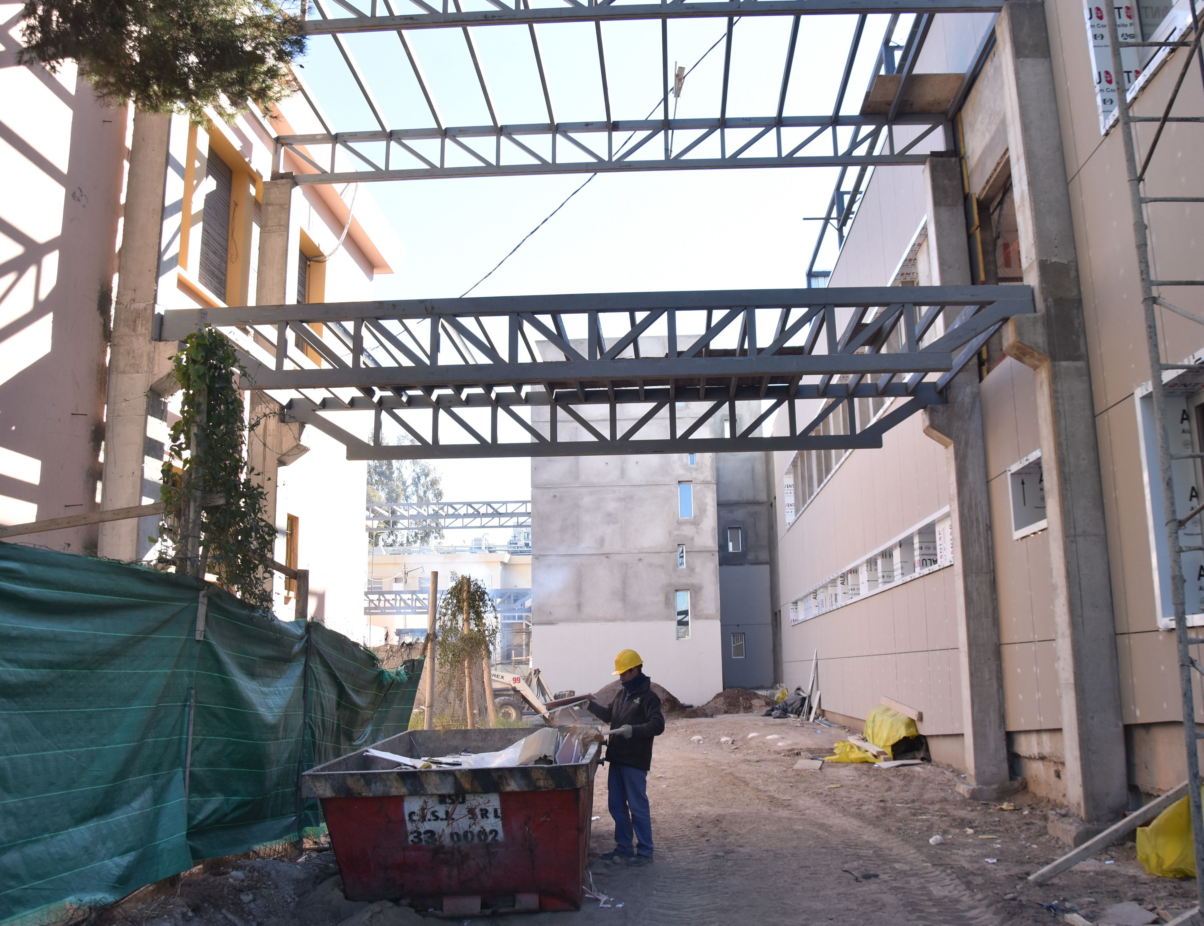 Junto al viejo edificio del hospital, que fue inaugurado en 1971, más de 60 personas trabajan a diario. Son los encargados de levantar el nuevo sector que ya tiene casi listo las 3 plantas. Ahí se mudarán Urgencias, Terapia Intensiva, Unidad Coronaria y Diagnóstico por Imagen, entre otras.