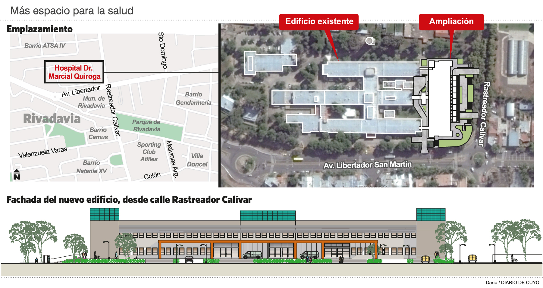 En la esquina de calle Calívar y avenida Libertador la obra de ampliación del hospital Marcial Quiroga ya está casi lista. La imponencia de ese edificio hace que todos los que pasen por el lugar vean cómo avanza día a día. De hecho, ya hay zonas que están pintadas y hasta con la carpintería colocada. Marcelo Salía, director de Arquitectura del Ministerio de Obras, dijo que la construcción tiene un 80% de avance, que se cumplirán los plazos previstos y que calculan que en agosto estará todo listo para comenzar a instalar los equipos médicos. "La parte operativa del hospital está prevista para fin de año. Una vez que la empresa entregue la obra, habrá que comenzar con la puesta a punto, porque una vez que empiece a funcionar no puede parar. Hay que hacer todas las pruebas de los equipos que tienen preinstalación como los paneles de cabecera de las camas de terapia, los equipos de gases medicinales y las redes de emergencias, entre otras cosas", explicó el funcionario. Mientras que desde el hospital Marcial Quiroga dijeron que esta obra permitirá mejorar la calidad de atención de los pacientes, pues si bien no ampliará la capacidad de recepción, sí ofrecerá mejores y más cómodos espacios.