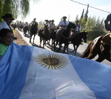 La partida de la cabalgata se demoró una media hora. Es que ningún gaucho quiso salir sin antes atar a su sombrero una cinta celeste y blanca o colgar de su caballo o carro un manojo de globos de colores patrios. Colores que también se reflejaron durante todo el trayecto hasta Caucete, y a la vera del camino. La gente que se agolpó en las calles para ver el paso del gauchaje concurrió con banderas, camisetas y sombreros albicelestes para demostrar su apoyo a los jinetes y su sentir nacional. Todo esto se vivió ayer durante la partida de la Cabalgata de la Fe que hoy a las 13.30 llegará a la Difunta Correa.