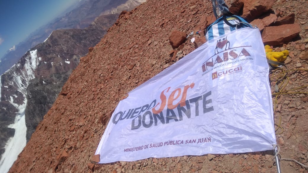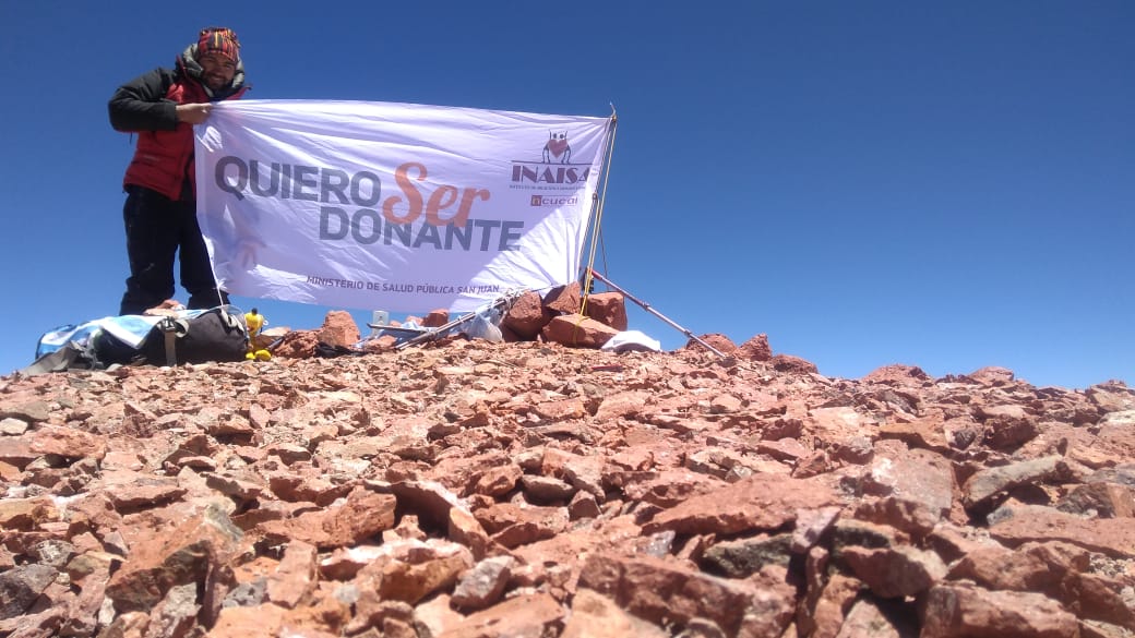 Este domingo, el grupo nacional Vibraventura, llegó a la cumbre del Mercedario, la más alta de San Juan, con la bandera que promociona la donación de órganos y tejidos.
