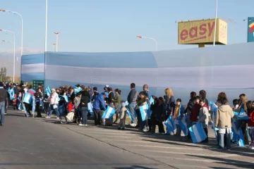 "Nosotros estuvimos en Buenos Aires para los festejos del Bicentenario y ahí conocimos a la gente del Gobierno de San Juan. Ellos nos contaron lo que iban a hacer hoy y nos invitaron. Por eso, aquí estamos", dijo Trevici. Detrás de ella se veía 1.000 metros de bandera, según dijeron oficialmente, que trajeron y colgaron en las luminarias de la Circunvalación, en la zona en la que estaba ubicado el palco.