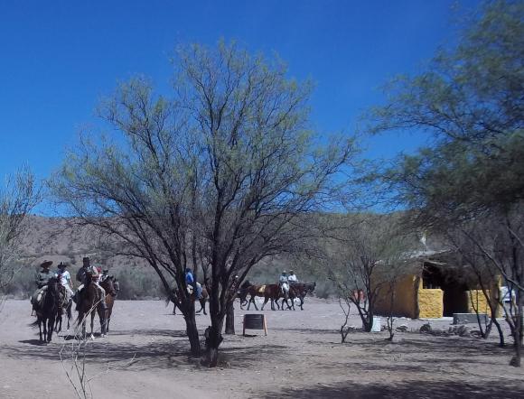 Entre el grupo de jinetes se encontraba el padre Andrés, ataviado con polainas, sombrero y pañuelo al cuello. Ni bien dejó a su caballo atado a uno de los algarrobos, se dedicó a bendecir al resto de los animales de la cabalgata y a sus propietarios que se quedaron hasta que el Sol se ocultó. Durante el día, no faltó el asado, el buen vino y hasta una guitarreada bajo los pocos árboles que hay en el lugar.