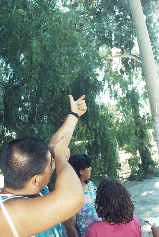 Esa noche, los Brizuela-López, desvelados, intentaban pasar la calurosa noche jugando en la calle. De golpe, una enorme sombra proyectada por la enorme luz lunar y la farola del alumbrado público les llamó la atención. Al principio, la familia intentó que aquella presencia pasara desapercibida, pero la curiosidad pudo más. López y a su sobrino Raúl Brizuela se acercaron a investigar qué era lo que había sobre el árbol añejo.