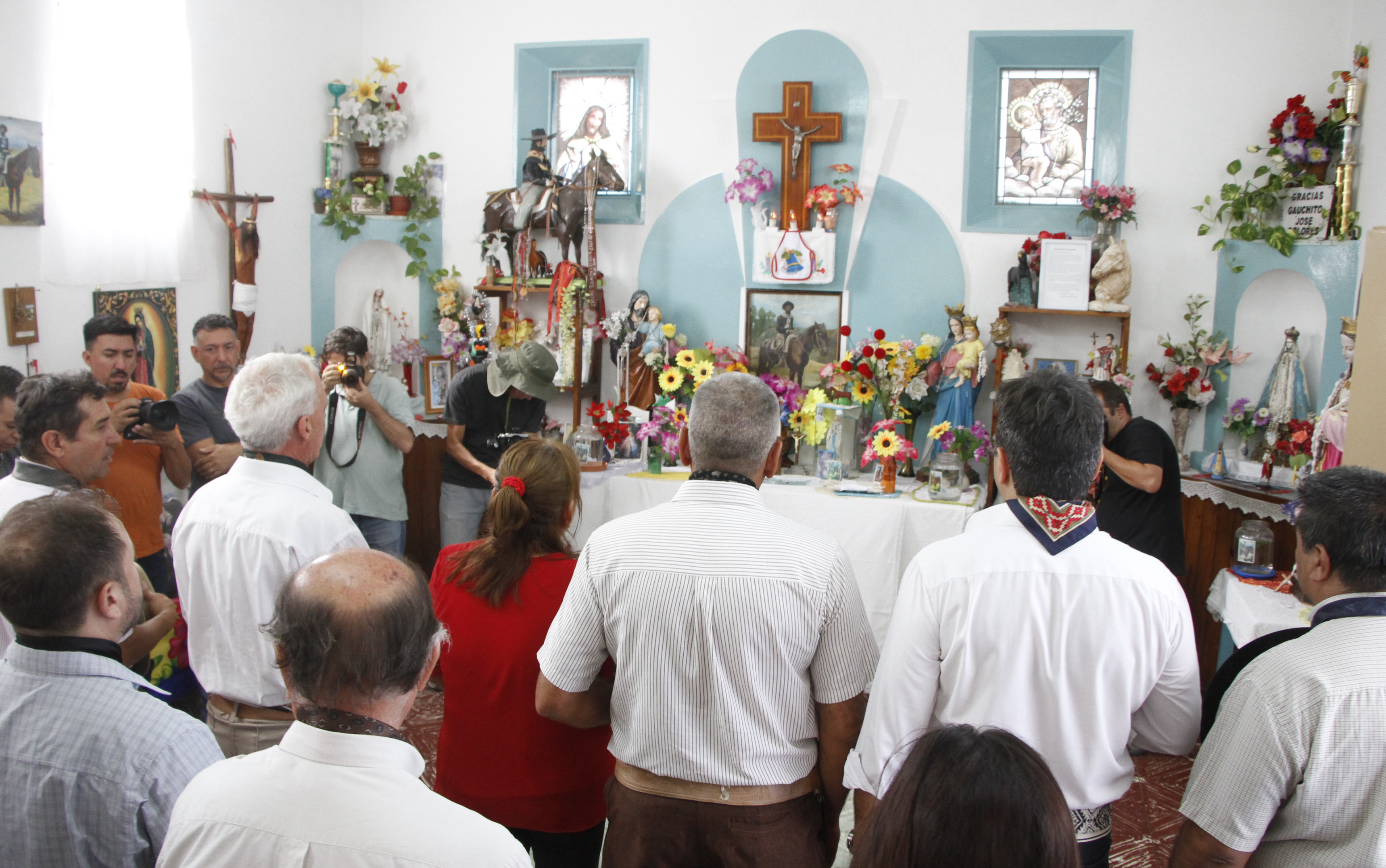 La primera posta de la cabalgata se realizó en el oratorio en honor a José Dolores donde los jinetes le rezaron una oración a este gaucho y presenciaron la inauguración del mural que relata la vida de este gaucho, otra de las novedades incluidas en esta edición del evento. También aprovecharon para descansar unos minutos antes de continuar con la travesía. Pero, los efectivos de la Unidad Rural no descansaron. Circularon por entre los gauchos que coparon la calle José Dolores, para verificar si necesitaban algún tipo de ayuda o asistencia.