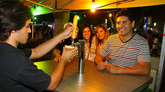 Cerca de ahí, el stand de Cumbre es más chico pero igual de visitado. Sus propietarios montaron una pequeña fábrica en Santa Lucía y también se presentaron por primera vez en la celebración departamental. ‘La gente pregunta mucho antes de comprar y creo que se va conforme porque es algo 100% natural. Tenemos una cerveza tipo americana con un toque de caramelo’, dijo Carlos Tascheret.