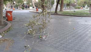 San Juan, 26 de Noviembre.- Los efectos del fuerte viento Zonda que azotó a la provincia el 24 de diciembre aún pueden observarse en cada cuadra de la provincia. Es que los feriados de los últimos dos días demoraron los trabajos de remoción de árboles, ramas y carteles caídos.
