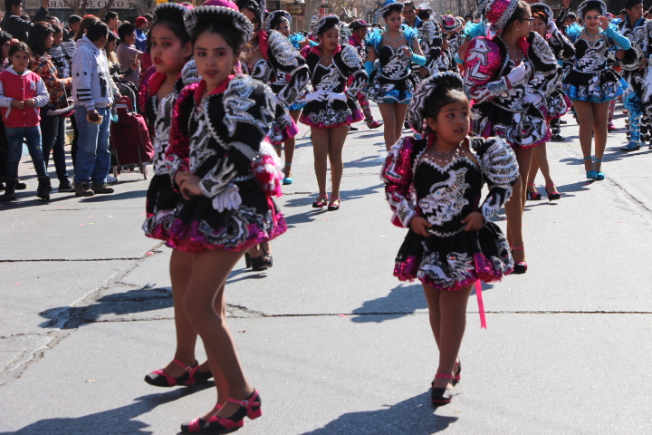 La marcha de los “caporales”, bailarines con cascabeles sujetos a sus piernas que remiten a épocas de amos y esclavos, parodiando a los opresores y reivindicando a los oprimidos, atrajo la atención del público.