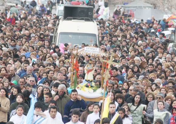 Después de recorrer las calles que rodean a la capilla, los fieles recibieron la imagen de San Cayetano con aplausos, tiritas de colores y banderas celestes y blancas y amarillas y blancas, de papel crepé. Luego comenzó la misa, oficiada por monseñor Román Becerra, que dedicó sus palabras a incentivar a los fieles a no perder la fe.