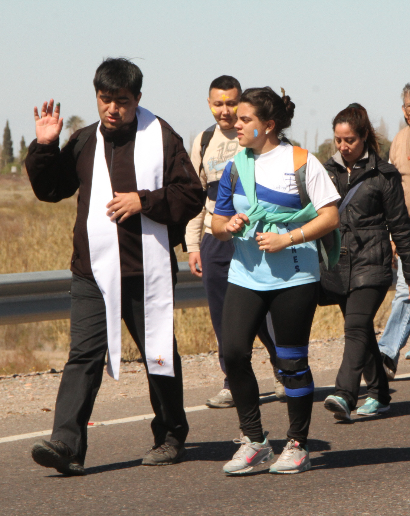 Con ritmo lento, pero sin tregua, la multitud partió por calle Rivadavia hasta llegar al puente de la Circunvalación donde se ubicó la primera posta. Allí, una lluvia de papeles plateados sorprendió a los caminantes. Luego siguieron por Roque Saenz Peña hasta llegar a Alto de Sierra. En el camino hubo varios puestos para que desayunaran y hasta se hidrataran. Y entre cántico y cántico, los chicos avanzaron para llegar a su meta: el predio de Ceferino Namuncurá.