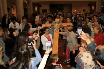Algunas mujeres lloraban, otros fieles querían abalanzarse, unos filmaban el momento con sus celulares y el resto cantaba, silbaba, rezaba y aplaudía. Para quienes estuvieron en el templo, el ingreso de la Cruz de los Jóvenes fue un instante pleno, de alegría y, fundamentalmente, de emoción. La imagen que bendijo el papa Francisco en la Jornada Mundial de la Juventud Río 2013 llegó anoche a San Juan y la recepción se vivió como una revolución en la Catedral, con devotos extasiados y ansiosos por poder adorar la cruz. Durante seis días estará en la provincia y recorrerá varios departamentos de San Juan, antes de ser entregada a los feligreses de Mendoza.