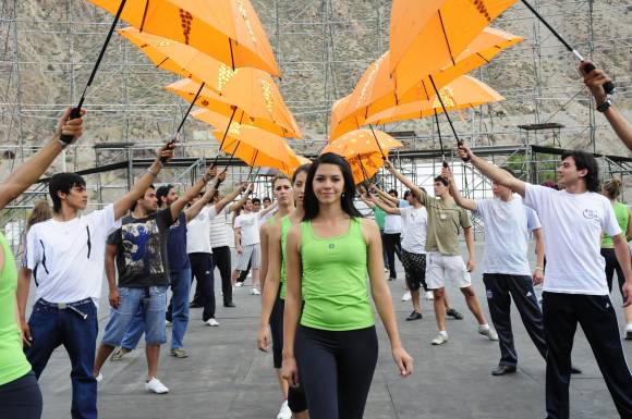 Los 19 paraguas naranja se mueven de un lado a otro, pasan de las manos de las candidatas a las de los bailarines y hasta se unen para formar un puente que las 19 chicas recorren desfilando. Eso es lo que se verá en una parte de la coreografía que presentarán las candidatas a Reina Nacional del Sol en la noche clave, la noche de la elección de las nuevas soberanas, el próximo 26 de febrero en el autódromo El Zonda-Eduardo Copello. Y ayer, el grupo tuvo la oportunidad de bailar por primera vez sobre el escenario del lugar.
