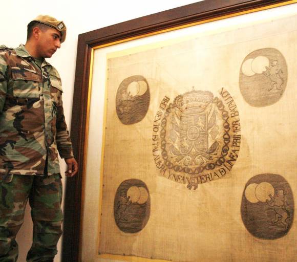 La secretaria de Cultura de la Provincia, Zulma Invernizzi, fue quien anunció ayer que esta insignia será trasladada desde el RIM 22, donde actualmente se encuentra alojada, al Ala Sur de Centro Cívico. ‘Vamos a aprovechar la llegada de la restauradora de la Bandera de Cabot, Patricia Lissa, para que analice la de Talavera. Como está en un marco, no sabemos el verdadero estado en que se encuentra y si necesita o no restauración. Si la bandera requiere algún tipo de trabajo, veremos cuándo y dónde se hará. De lo contrario, iniciaremos el proceso para trasladarla al Centro Cívico’, indicó Invernizzi.