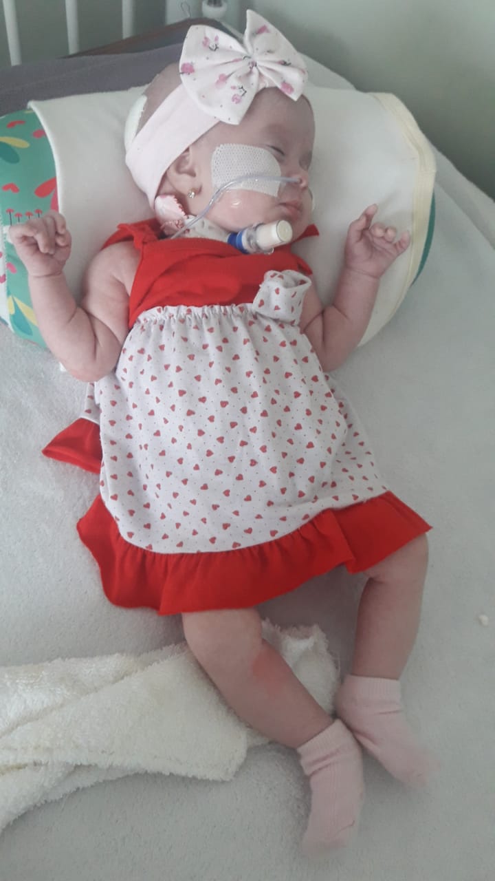 Aimara nació el 22 de noviembre sobre el mediodía y tras la cesárea inmediatamente fue trasladada a Neonatología. Al día siguiente confirmaron que la chiquita además de la hidrocefalia padecía también mielomeningocele. A la semana le dio una parálisis respiratoria y la beba tuvo que volver a ingresar a un quirófano para colocarle una traqueotomía. "El 2 de diciembre le colocaron la válvula para que despida todo el líquido. Padece convulsiones y está medicada de por vida, además como no puede despedir la orina, le tenemos que colocar una sonda para que pueda hacer pis", comenta la mamá, de 18 años.