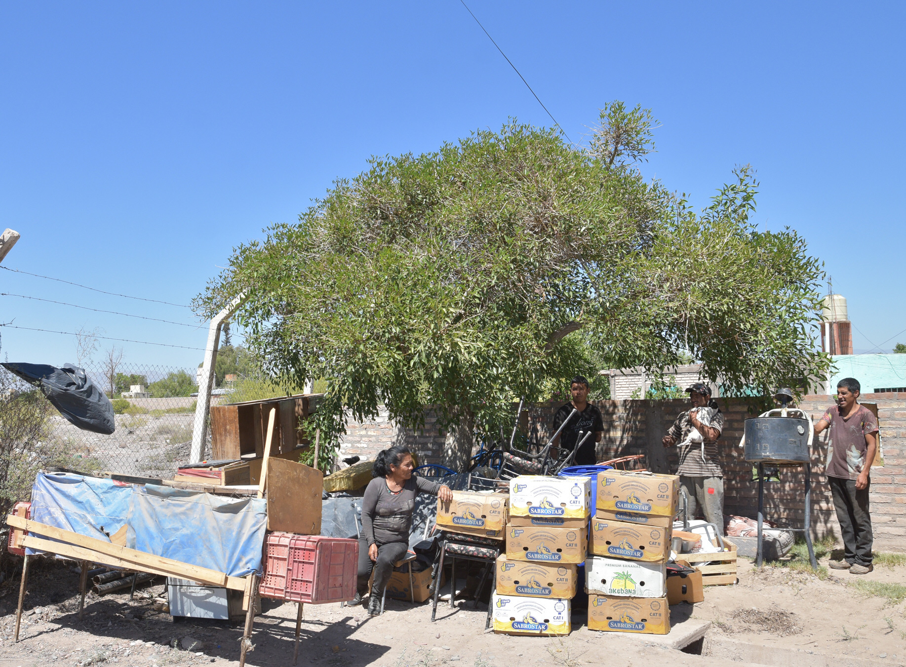 Un fresno que limita con un descampado donde abunda la basura se convirtió en el nuevo hogar de Ceferina y sus tres hijos de 30, 40 y 42 años, los dos más grandes con una discapacidad mental, y el más chico con una malformación física. Pese a esto, él es el encargado de vender medias por la calle para ayudar con el sustento, ya que las pensiones por discapacidad que cobran apenas les alcanza para comer. Esa fue la principal razón del mal momento por el que atraviesan ahora. ‘Por 6 años vivimos en una casa en Villa María, acá en Chimbas, que una familia nos prestó. Pero la vendieron y nos dieron un día para irnos. No nos quedó más remedio que quedarnos en la calle con las pocas cosas que tenemos. Y otra vez tuve que sacar fuerzas para no desamparar a mis hijos y seguir luchando, siempre los 4 juntos’, dijo Ceferina mientras se secaba las lágrimas.