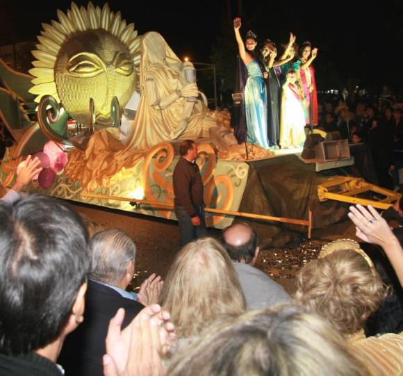 Después de la maquinaria desfilaron los carruajes de los diferentes departamentos, con un despliegue artístico que emocionó a todos los presentes. Sobre todo cuando hizo su paso el carro caucetero que hizo alusión a la vitivinicultura con un sol gigante realizado con corchos, y encabezado por un grupo de artistas que mostraron el sacrificio de esta actividad. Pero ese no fue el último momento emocionante de la noche.