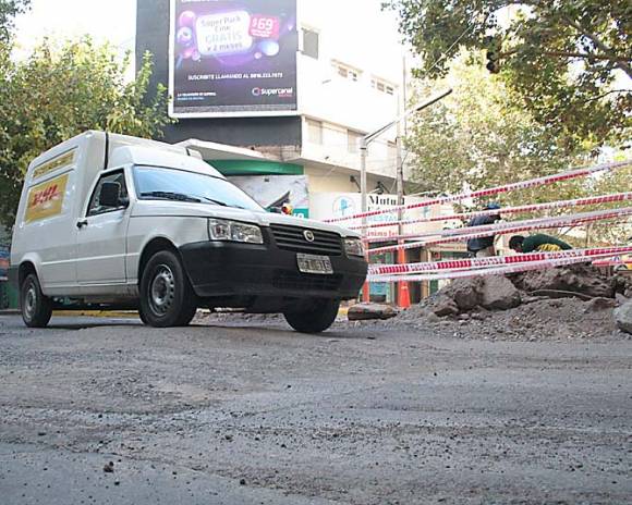 Todo comenzó con un agujero pequeño en la esquina de Santa Fe y Mendoza, para ver por qué se estaba hundiendo el pavimento. Descubrieron que un pasante estaba roto y decidieron hacer un hueco más grande para cambiarlo. Pero, cuando parecía que el problema estaba solucionado, el hueco se llenó de agua. En realidad, era un caño el que estaba roto, y el agua había socavado el hormigón. Eso demandó que hicieran un agujero dos veces más grande que el anterior, que corta media calzada y genera complicaciones en el tránsito. Ahora que el caño está arreglado, los obreros retomaron las tareas para hormigonar la calzada, aunque nunca se sabe qué pasará en una cuadra que parece estar maldita.