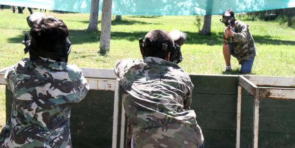 Lejos de los cuadernos, libros y lecciones, el mate fue lo elegido para empezar la mañana. Tirados en el pasto, o sentados en sillas y mesas, los chicos entraron en calor. Algunos jugaron al vóley y no faltaron los que se animaron a hacer picaditos de fútbol. Sin embargo, la estrella de la jornada fue las guerras de colores. Por eso, hubo largas filas de alumnos que esperaron su turno para vestirse con camperas camufladas, ponerse los cascos y disparar bolitas de pintura a sus compañeros de curso. Los que más se prendieron en esta actividad fueron los alumnos de los primeros años. Sin embargo, hubo algunos más grandes que también quisieron jugar.