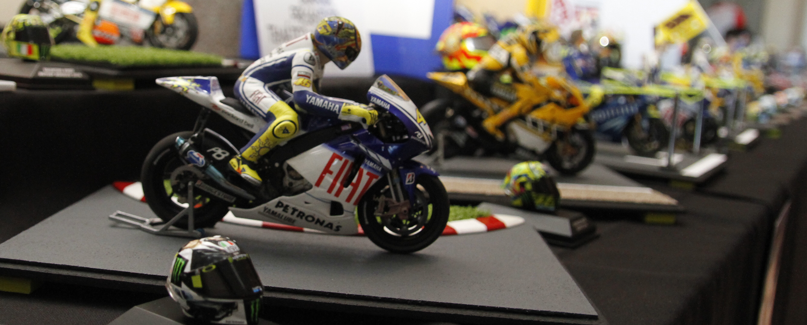 La extensa y exitosa trayectoria en los campeonatos mundiales de motociclismo de velocidad que realiza Valentino Rossi se refleja en una de las colecciones de la muestra.