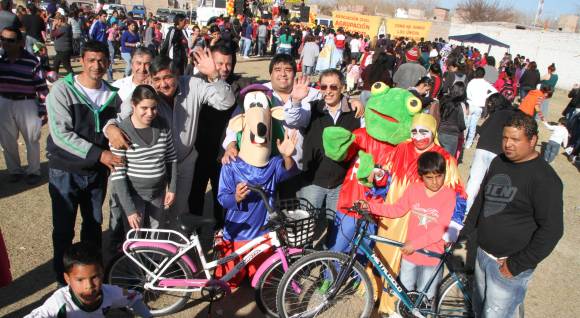 Cada vez que el locutor cantaba un número que había sacado de la urna, los chicos miraban con atención el papelito que les habían dado al llegar. No era para menos, ya que en cada sorteo tenían la posibilidad de llevarse uno de los 5.000 juguetes o de las 13 bicicletas que brillaban al pie del escenario. Mientras, Larguirucho, el Sapo Pepe y Piñón Fijo caminaban entre la gente entregando regalos. Y, para ese entonces, todos jugaban con los autitos y muñecos pequeños que, junto con golosinas, habían recibido en la entrada. De ese modo, todos los chicos que participaron en el 18vo Chocolate por el Día del Niño, organizado por la Agrupación Virgen de Fátima y auspiciado por DIARIO DE CUYO, se quedaron con un premio.