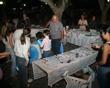 Los miembros de los talleres comunitarios y los artesanos del departamento expusieron sus obras en tablones dispersos por la plaza principal. Mientras tanto, los grupos cauceteros Materia Prima y Las Voces del Este tocaban chacareras, cuecas y tonadas en un escenario armado sobre la calle Alberdi. Y la gente movía algunas de las 500 banderas celestes y blancas que entregó el municipio.