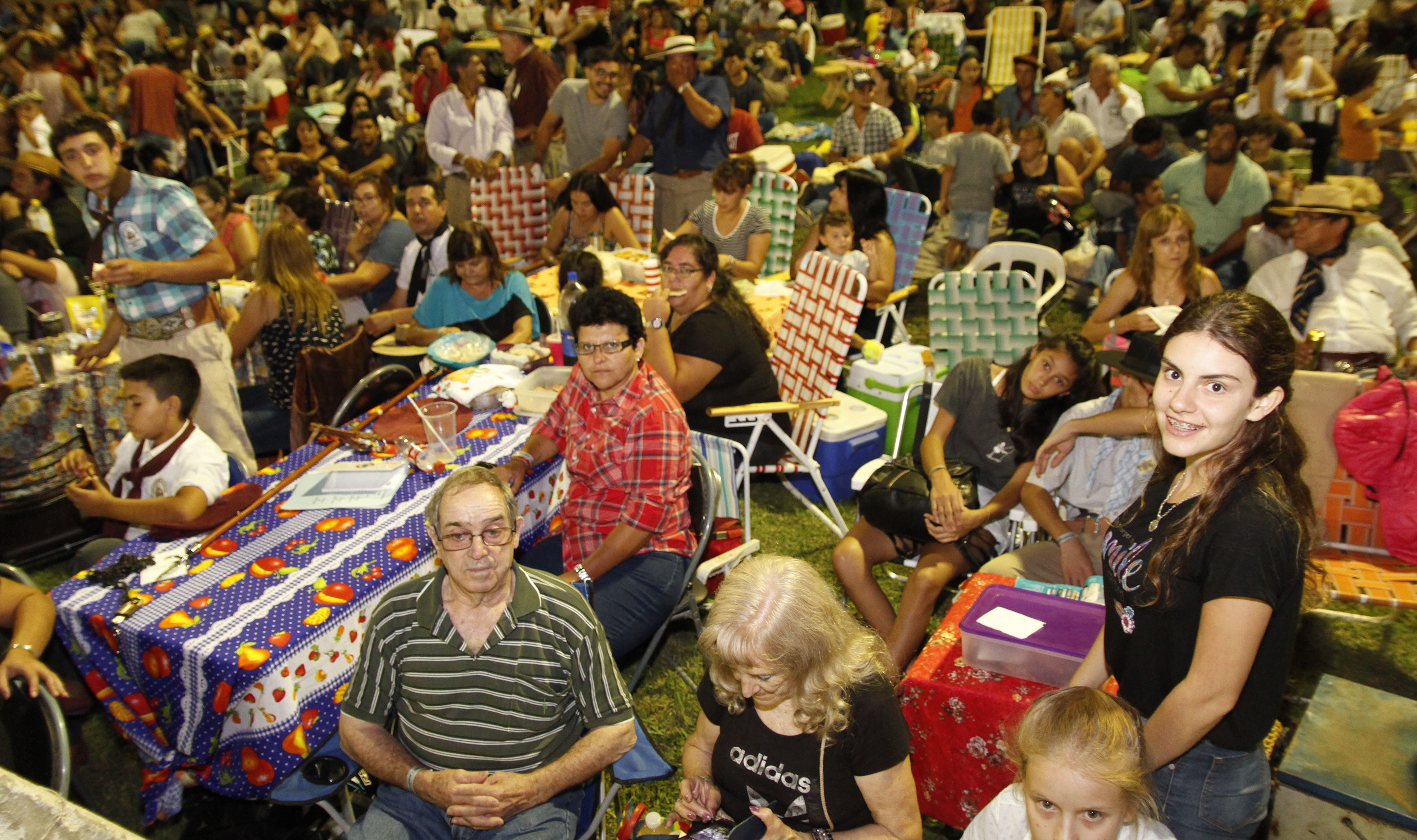 Entre tantos, Irene y Gabriel iban detrás de Gustavo y Yanina, quienes ya fueron en ocasiones anteriores e invitaron ahora a la otra pareja a presenciar el espectáculo tradicionalista. "Es nuestra cultura, desde las destrezas gauchas hasta las comidas, en un ambiente familiar", resaltó Yanina. "Hay mejor iluminación y organización", destacó Gustavo. A los primerizos les llamó la atención la cantidad de gente, estimada en 15.000 personas, y también el parquizado.