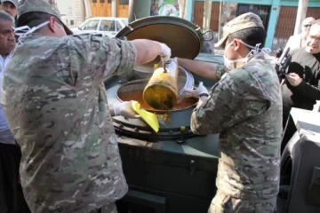 Ni bien destaparon las enormes cocinas del regimiento, el aroma típico de locro invadió el lugar. Humeante, el tradicional plato argentino comenzó a atraer a la gente hacia el sector donde estaban las carpas, por calle Catamarca. No pasó mucho tiempo para que el público, que había presenciado el espectáculo patrio, montado por la Municipalidad de la Capital, formara una interminable fila para degustar la delicia que preparó la gente del DIM 22.