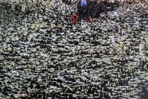 Mayo. Miles de manifestantes levantan pañuelos blancos para protestar por la aplicación de la Ley de 2×1 a los acusados de crímenes de lesa humanidad, en la Plaza de Mayo ( Eitan Abramovich)