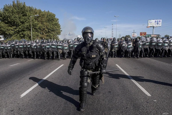 Abril. Gendarmería Nacional, minutos antes de reprimir y desalojar la autopista Panamericana durante un piquete de movimientos sociales y partidos de izquierda. El Talar, Buenos Aires (Adrián Escándar)