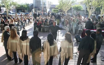 El festejo comenzó con el coro Santa Gema, que interpretó tres temas sanjuaninos e hizo cantar a todo el público. El grupo se presentó después de anunciar que participará en el Festival Internacional de Coros en España y fue felicitado con el aplauso de la gente.