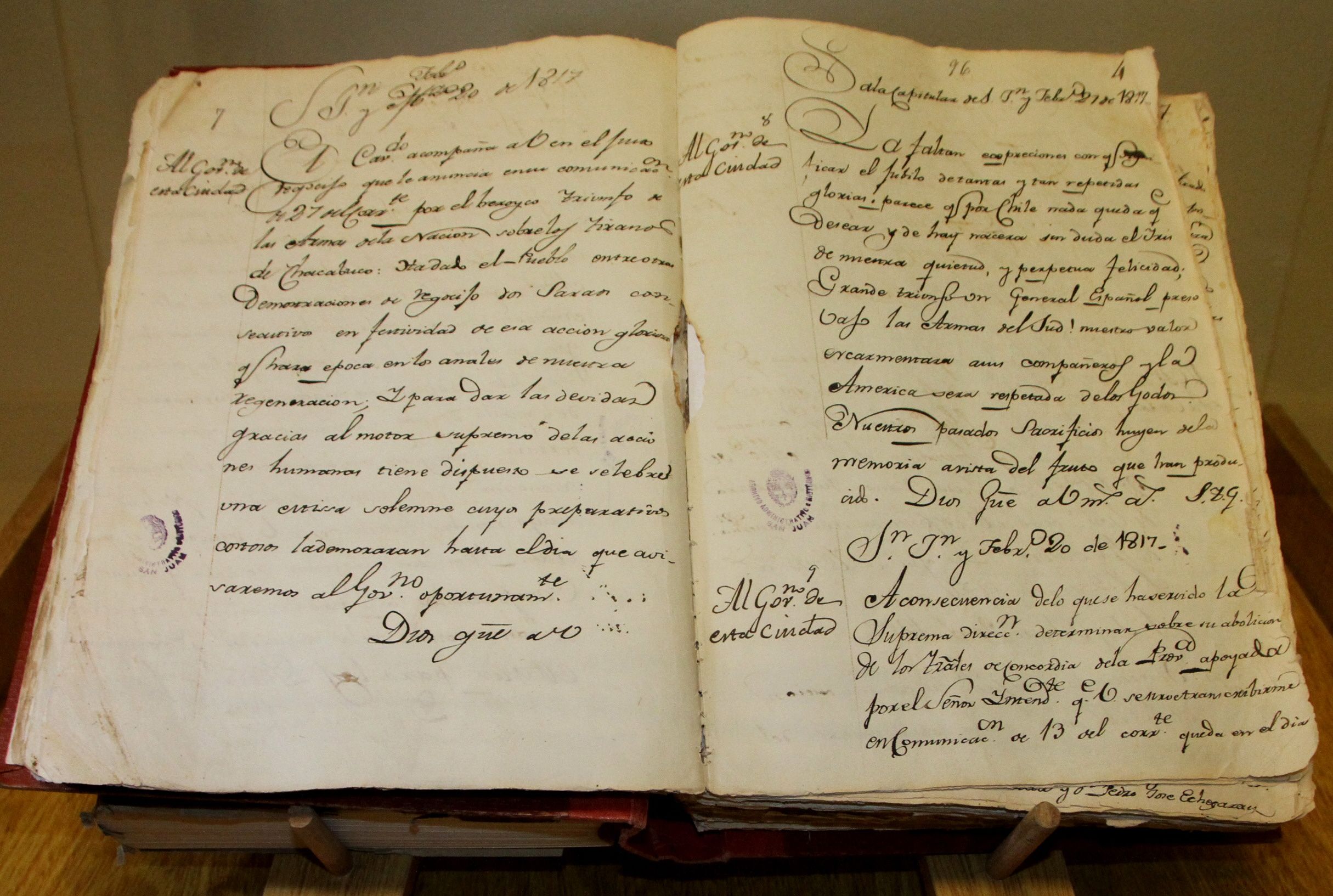En hojas amarillentas, con los bordes agrietados y con una caligrafía difícil de comprender, está escrita parte de la historia de la Gesta Sanmartiniana, que ocurrió hace 200 años cuando el prócer cruzó los Andes y consiguió liberar a Chile y Argentina, y posteriormente a Perú. Este fragmento de la historia es el que el Archivo Provincial saca hoy a la luz. La muestra está organizada en orden cronológico y cada uno de los documentos contiene la firma de San Martín.